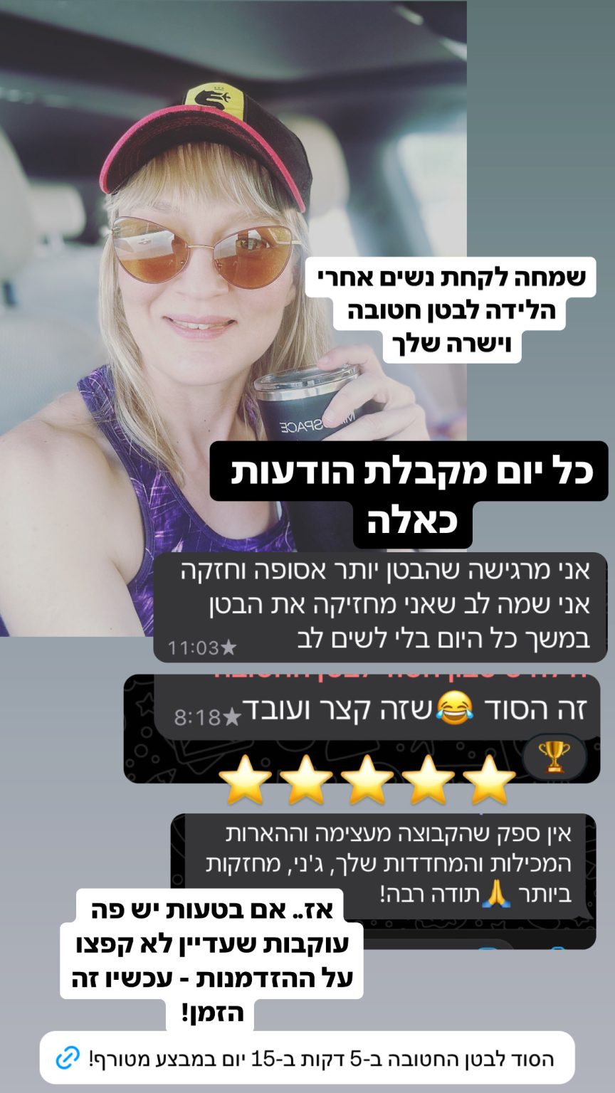 תצטרפי אלינו בקליק לתכנית הסוד לבטן לבטן החטובה ב-5 דקות ב-15 יום